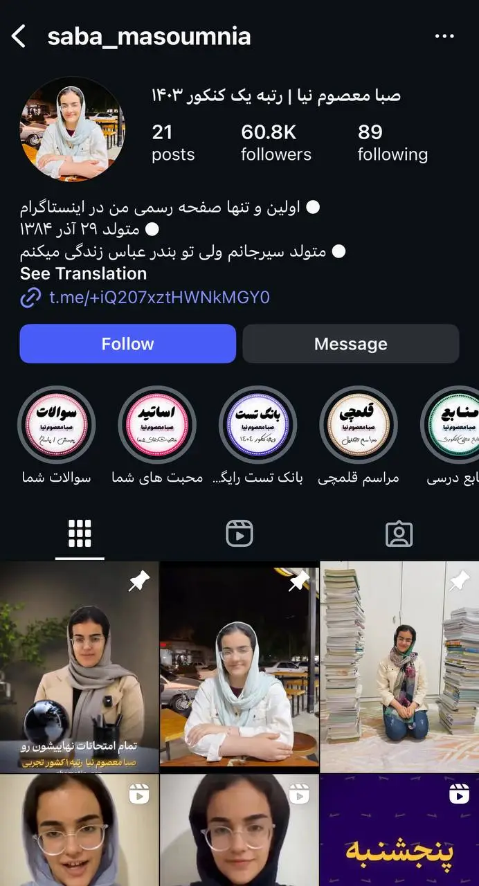 صبا معصوم نیا رتبه 1 کنکور 1403 تجربی